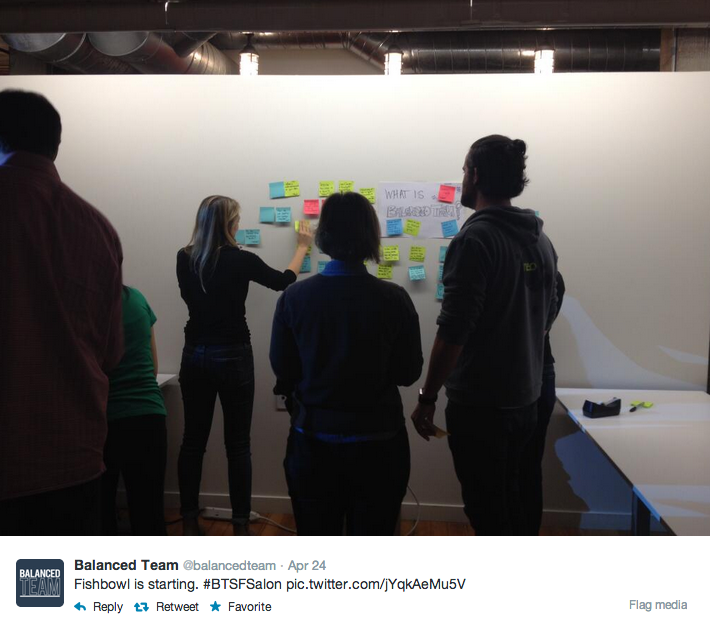 There has been a great deal of recent momentum with the Balanced Team folks. A clutch of long time members gathered recently for the Lean UX NYC conference followed up by a Balanced Team Salon hosted at Pivotal Labs. Several of us shared a desire to carry some of that energy back with us to the west coast. Initially this felt like a good opportunity to round up some of the BT friends in San Francisco for a night of cocktails and conversation. After a couple conversations among several folks we decided to change course, put some structure around it and turn it into a Salon.